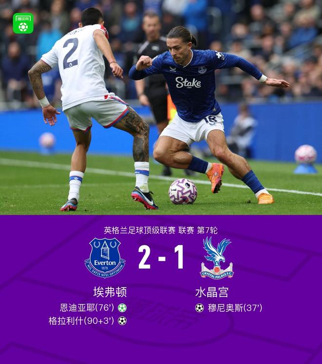 埃弗顿2-1逆转送水晶宫赛季首败,格拉利什补时绝杀