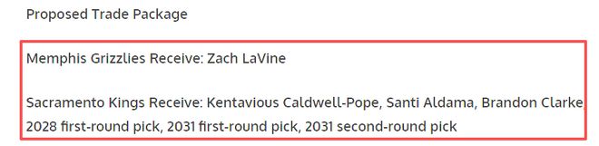 芝加哥公牛得到:肯塔维厄斯·考德威尔-波普、桑蒂·阿尔达马、布兰登·克拉克、2028年首轮选秀权、2031年首轮选秀权、2031年第二轮选秀权